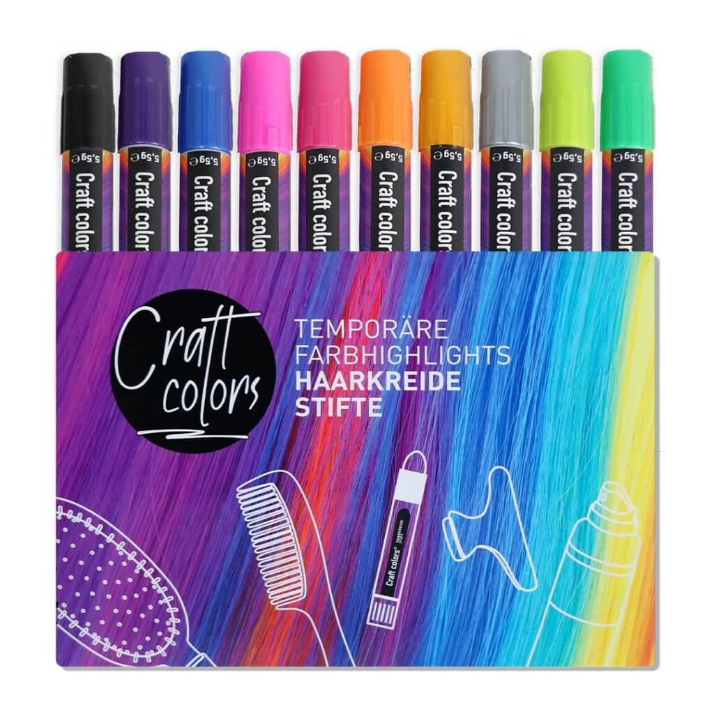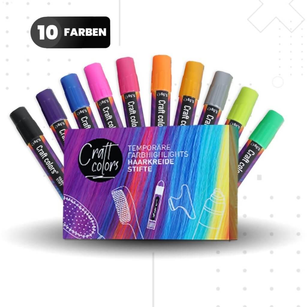 Stylos à craie pour cheveux pour petits et grands. 10 stylos de coloration pour cheveux lavables colorés pour une coloration temporaire, des cheveux colorés pour la coloration à la craie pour cheveux de Mardi Gras, Carnaval et Halloween. -
