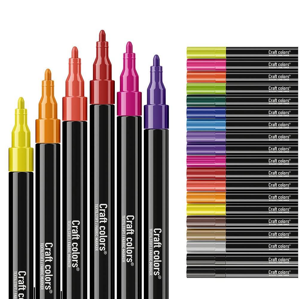 Ensemble de stylos textiles Craft colors®, 20 marqueurs textiles, lavables en machine -